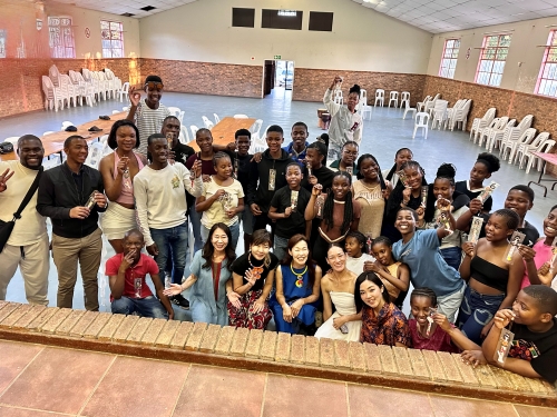 10月19-22日に南アフリカ共和国西ケープ州の小さな町に住むゾラニ青少年合唱団を日本人グループ5名が訪れ、彼らと歌を通じた交流を深めました。日本の文化を紹介する交流会で、コサ語と英語のピースドールと卓上ピースポールをプレゼントしてとても喜ばれました。